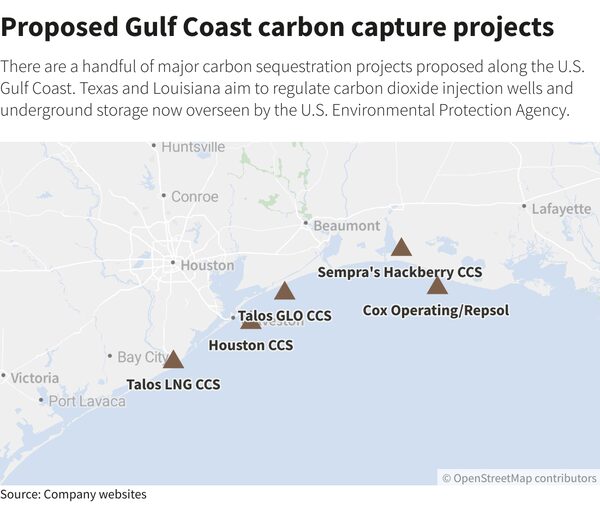 Proposed Gulf Coast carbon capture projectsReuters