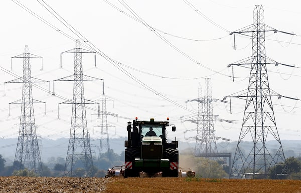 A farmer works in a field surrounded by electricity pylons in Ratcliffe-on-Soar, in central England, on Sept. 10, 2014.Darren Staples/Reuters