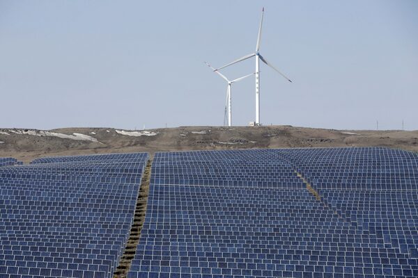 Wind turbines and solar panels in Zhangjiakou, Hebei province, China, on March 18, 2016.Jason Lee/Reuters