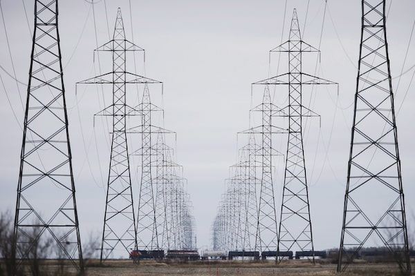 Hydro power lines outside Winnipeg, on May 1, 2018.JOHN WOODS/The Canadian Press