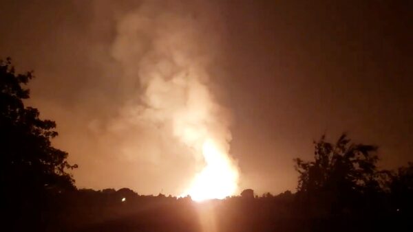 Flames light up the sky after an Enbridge natural gas pipeline exploded in Kentucky on Thursday.AARON STAMPER/Reuters