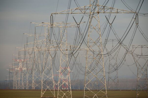 Pylons of high-tension electricity power lines in Avesnes-le-Sec, near Cambrai, France, on Jan. 8, 2021.PASCAL ROSSIGNOL/Reuters