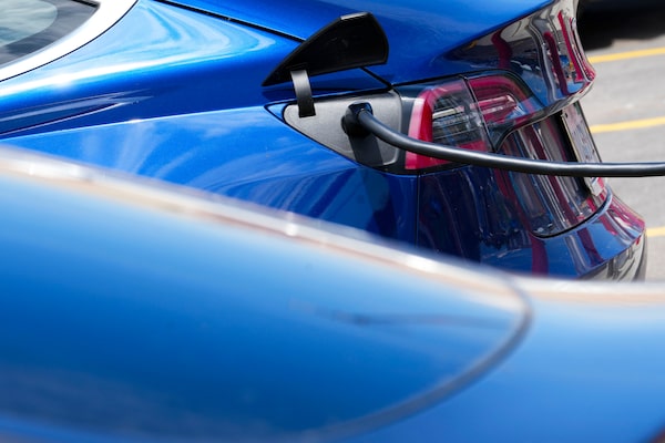 An electric vehicle at a charging station in Ottawa, on July 13, 2022.Sean Kilpatrick/The Canadian Press