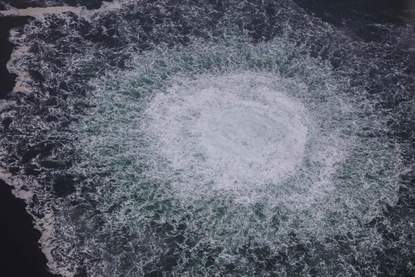 The release of gas emanating from a leak on the Nord Stream 1 gas pipeline, in the Swedish economic zone in the Baltic Sea, on Sept. 28.Supplied/AFP/Getty Images
