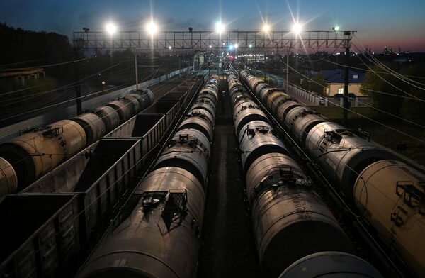 Oil cars sit at a railyard in Omsk, Russia, on May 1, 2020.Alexey Malgavko/Reuters
