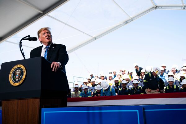 President Donald Trump speaks at Cameron LNG’s liquefied natural gas terminal in Hackberry, La., on May 14, 2019.DOUG MILLS/The New York Times News Service