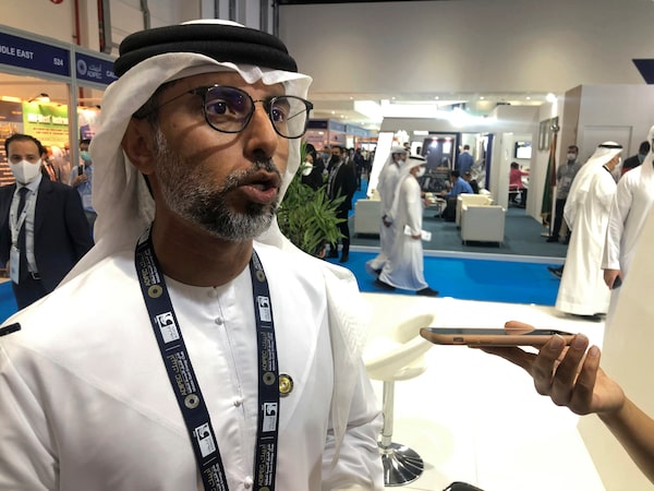 United Arab Emirates Energy Minister Suhail al-Mazrouei speaks to journalists at the Abu Dhabi International Petroleum Exhibition and Conference, in Abu Dhabi, on Nov. 15.Aya Batrawy/The Associated Press