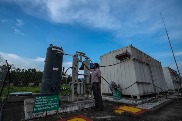 An officer checks a part of a hydrogen plant at Oil India Limited in Jorhat, India, on Aug. 17.Anupam Nath/The Associated Press