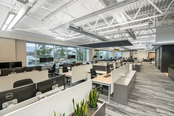 GHD’s leased space at 455 Phillip St. is part of what used to be a 150,000-square-foot BlackBerry facility. The building’s new owner, Spear Street Capital, says it spent ‘a fair amount of money’ renovating to make it suitable in size and aesthetics for new tenants. Among the cosmetic changes were exposing the ceilings to create a chic industrial feel.GHD Ltd.
