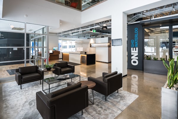 Its location, a stone’s throw from the university and a future light-rail transit station stop, matched Mr. Ferguson’s office checklist. “We need to be in sight of the University of Waterloo,” he says. “We need to be able to attract talent and we want our people to be able to see the benefit of having the LRT.”