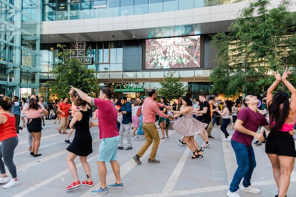 Salsa dancers swing on the plaza at Amazing Brentwood, which hosted 17 consecutive days of events this summer.Stephanie Lee/The Amazing Brentwood