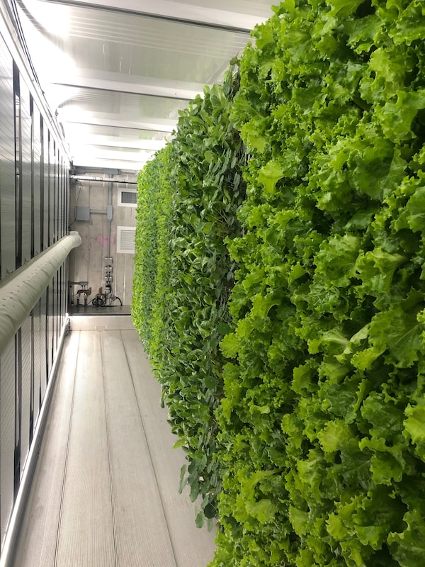 A shipping container is repurposed into an indoor vertical farm at a Reef hub in London, England.handout
