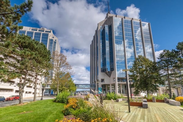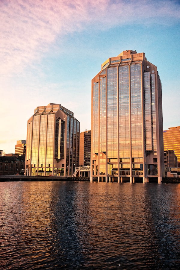 Purdy’s Wharf is a three-building office complex that was constructed in the 1980s. It was previously cut off from pedestrian waterfront access by a large retaining wall, diverting foot traffic to a pedway system, but that wall was removed as part of the Cogswell District project.
