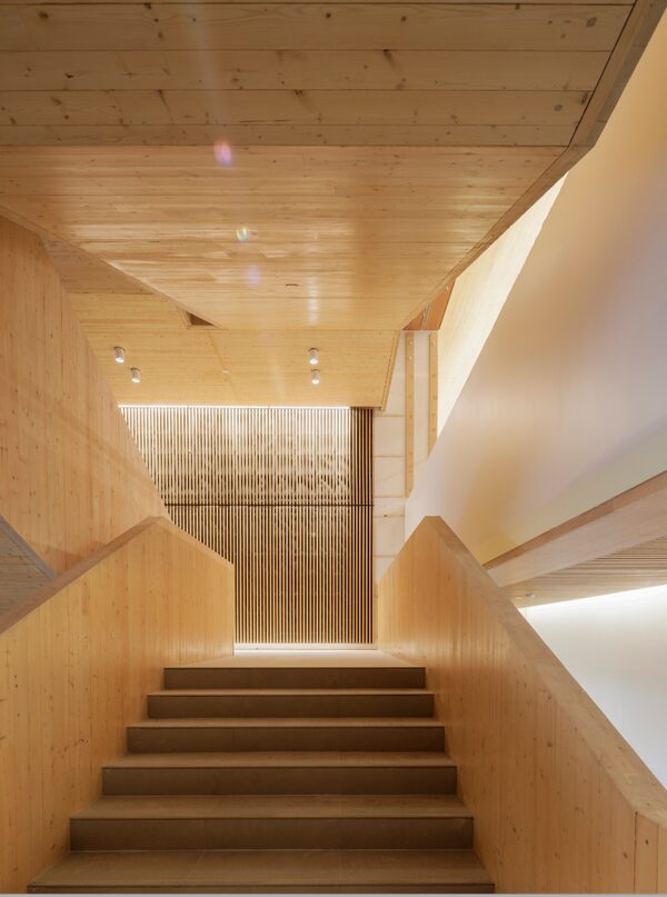 The central staircase is one of the key architectural features of Limberlost Place and is emblematic of the 10-storey, mass-timber structure.Salina Kassam Photography