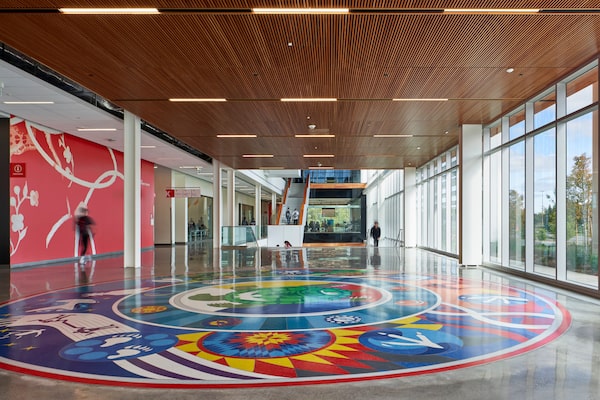 The centrepiece is a 10-metre diameter medallion in vividly coloured terrazzo in the floor of the main atrium, designed by Indigenous artist Joseph Sagaj. The inspiration is proving to work both ways, Mr. Frontini says.