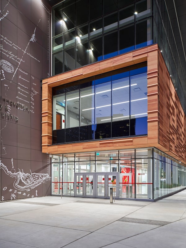 The entrance of Seneca's Centre for Innovation, Technology and Entrepreneurship features Indigenous designs.doublespace photography