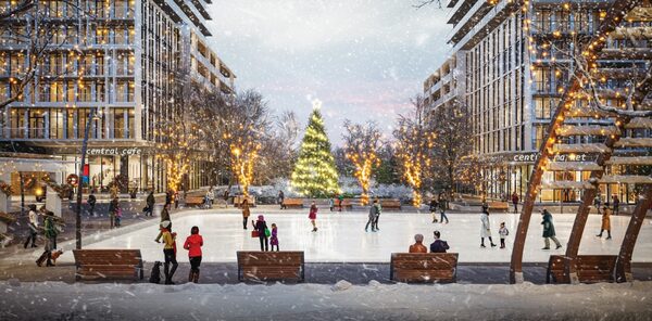 Central Park in Sheppard-Leslie development will feature cafes. retail and markets.Amexon Developments