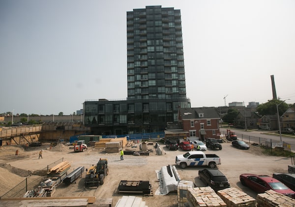The first of three towers is operational as construction continues on the GloveBox development project in Kitchener.Glenn Lowson