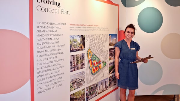 Displays in a former store at Cloverdale Mall that’s now Cloverdale Common invite community to comment on plans for redevelopment.Wallace Immen/Wallace Immen