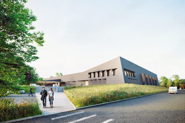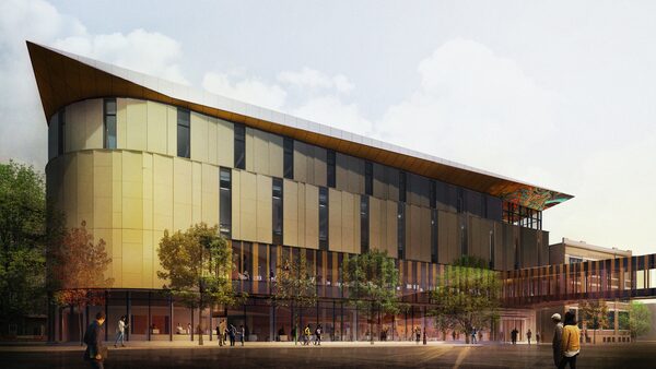 The building, designed by Diamond Schmitt in association with gh3 Architects, is due to start construction in 2022 and will be clad with an innovative solar wall.