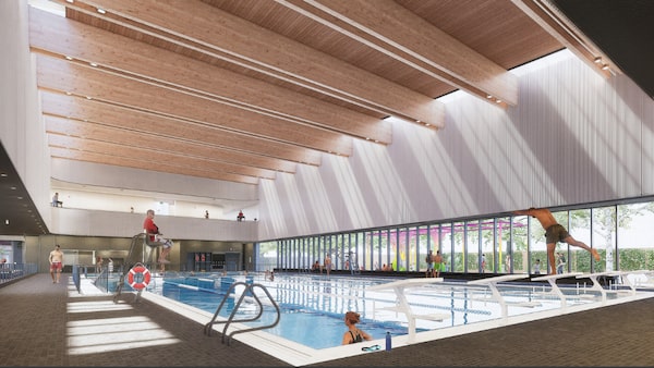 The Western North York Community Recreation & Child Care Centre’s aquatic facility is one of Canada’s first net-zero locations of its kind. It’s slated to open in 2028 and will target a roughly an 80-per-cent reduction in energy use and a 40-per-cent reduction in emissions.”MJMA Architecture + Design/Supplied