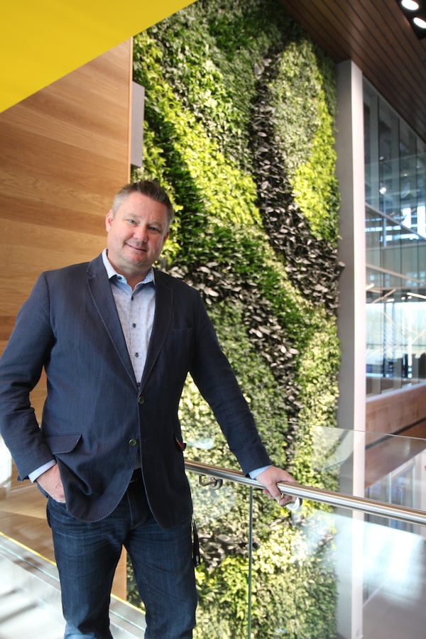 'It is a no-compromise solution and we are delivering it at market rates,' Cora Group COO Adrian Conrad says of Evolv1, the environmentally sustainable office building in Waterloo whose green features include a 12-metre-high living wall in the foyer.Jennifer Lewington/The Globe and Mail