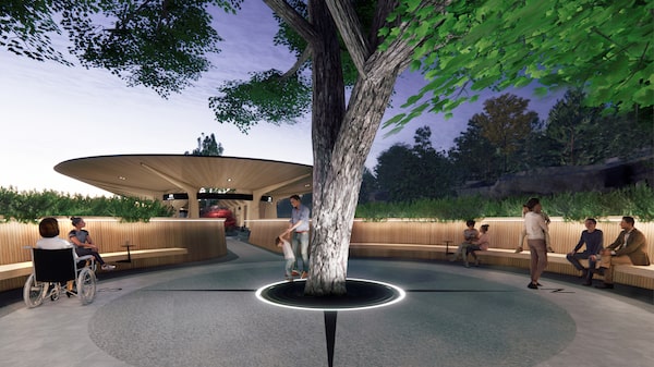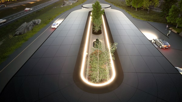 Waypoint One, the top Canadian entry in an international design competition of electric-vehicle charging stations, shows a sustainable fuelling site that provides a charging hub and rest areas inspired by the natural environment.Sean Solowski Architect