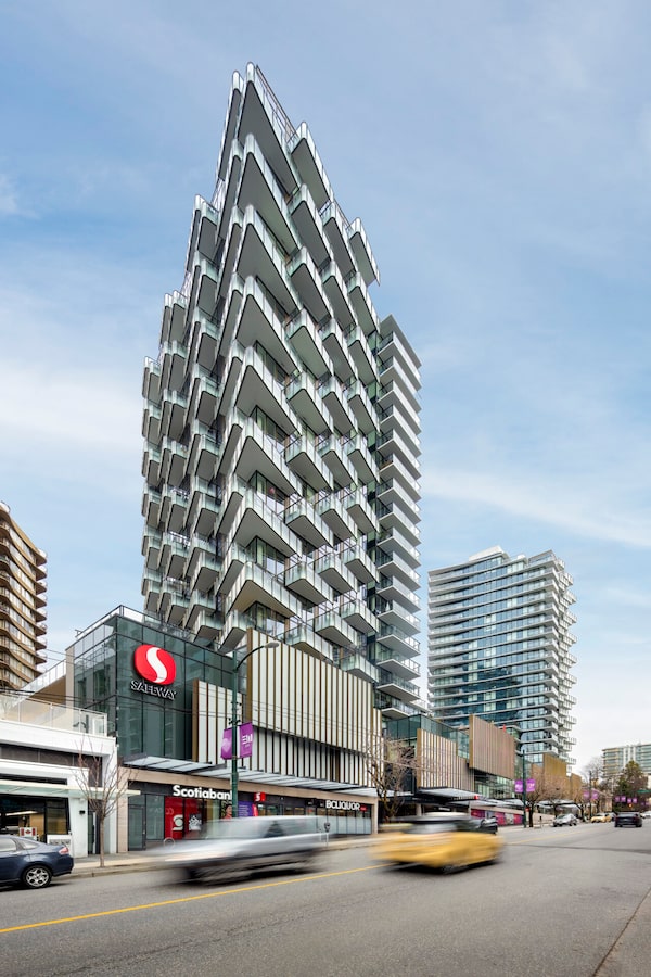 Mr. Holly points to a previous intensification of a Safeway in Vancouver’s high-density West End neighbourhood. Redeveloped in accordance with LEED Gold standards in 2021, the mixed-use property features a Safeway anchoring a retail strip that includes a BC Liquor Store, Scotiabank and other shops, all supporting 330 luxury rental units in two towers.