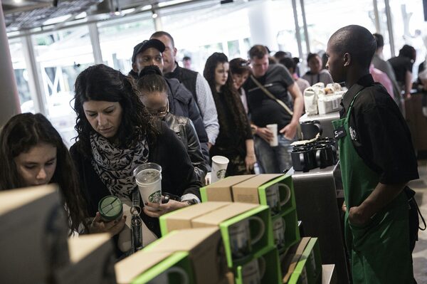 Hundreds of people line up during the official opening of South Africa's first Starbucks store in 2016.GIANLUIGI GUERCIA/Getty Images