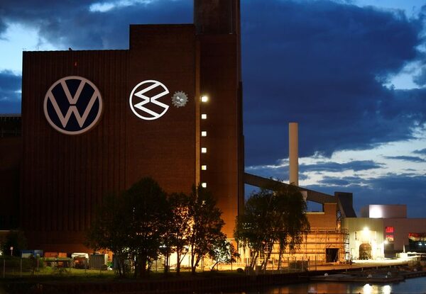 VW, the world’s largest car manufacturer, is celebrating the reopening of its biggest plant, in Wolfsburg, by projecting a cartoon of a VW logo squashing coronaviruses.