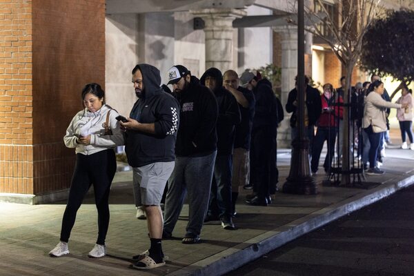 People wait outside a Best Buy store in Downey, Calif., on Nov. 29.ETIENNE LAURENT/AFP/Getty Images