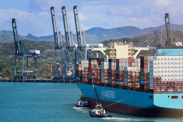 A container ship Maersk El Alto is guided by tugboats at Panama Ports Company last week after Panama’s Supreme Court annulled key port contracts held by the the CK Hutchison-owned firm.Aris Martinez/Reuters