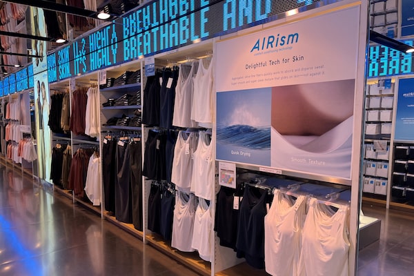 Fast Retailing’s Uniqlo has expanded its AIRism line using super-fine, smooth fibres made from polyester and cupro, which is made from cotton waste, that it says dry quickly and feel cool.