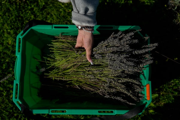 Cadence Thurgood places freshly-cut lavender in a bucket while harvesting, Wednesday, Aug. 21, 2024, at a farm in East Garafraxa, Ontario.Joshua A. Bickel/The Associated Press