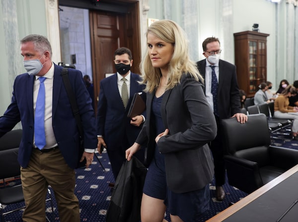 Facebook whistleblower Frances Haugen departs during a break in testifying before a Senate Commerce, Science and Transportation Committee hearing on Capitol Hill in Washington.EVELYN HOCKSTEIN/Reuters