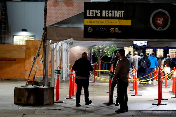 Workers return to FCA Chrysler Warren Truck Assembly to restart production on May 18, 2020 in Warren, Mich.JEFF KOWALSKY/AFP/Getty Images