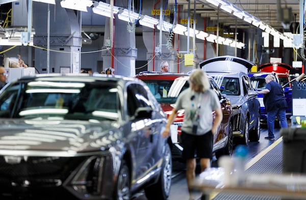 Vehicles are given final inspections at the end of the assembly line at a General Motors plant in Tennesee on Oct. 7, 2024.BRETT CARLSEN/The New York Times News Service
