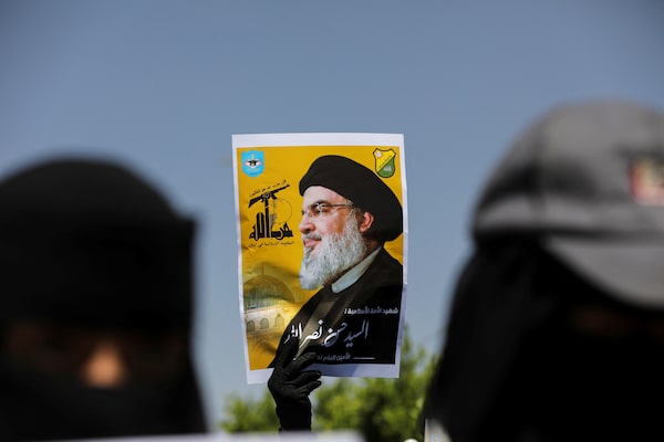 A student holds a poster of Hezbollah leader Syyed Hassan Nasrallah during a rally in Sanaa, Yemen, on Oct. 2.Khaled Abdullah/Reuters