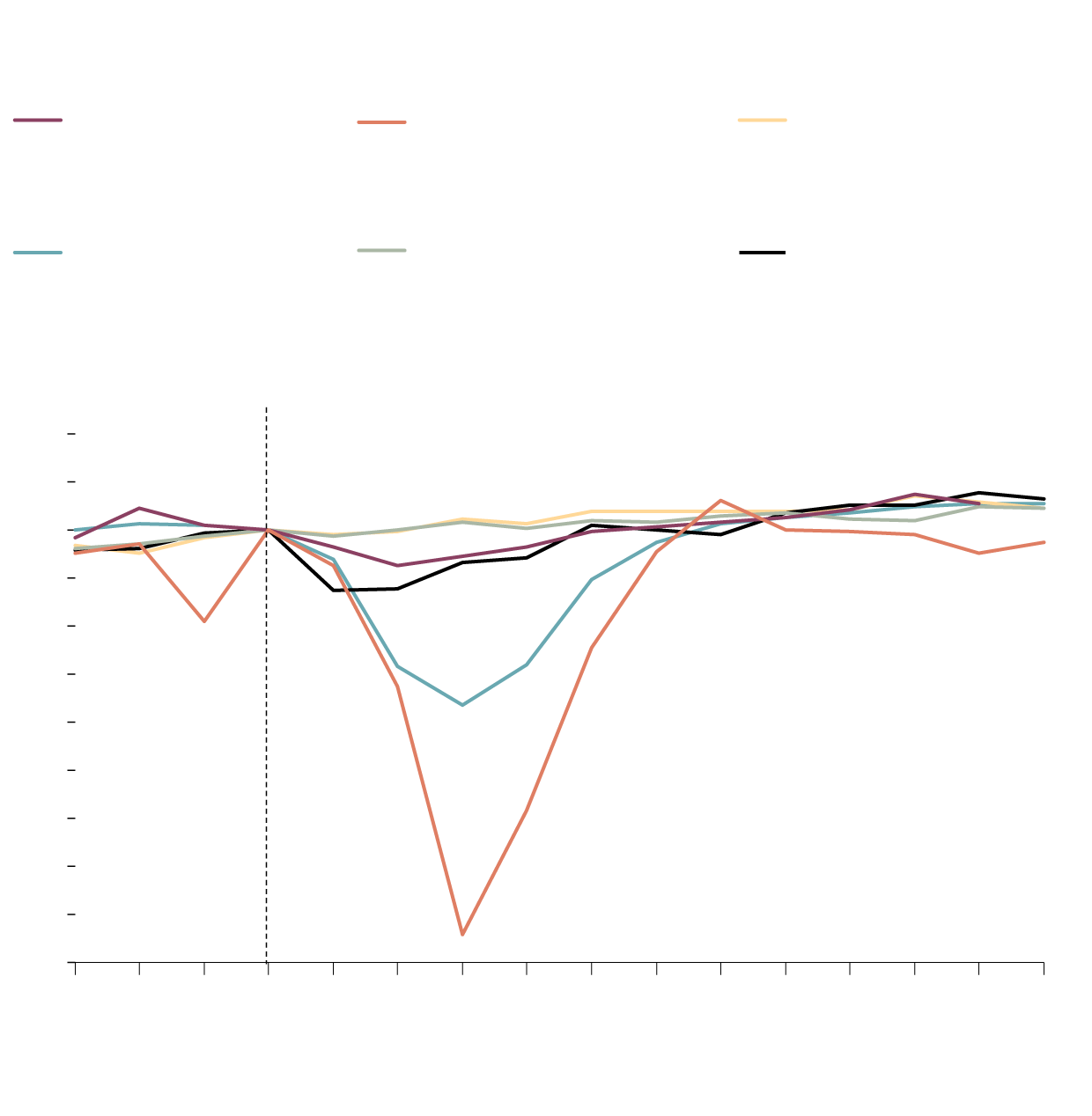 Months before and after the start of the crisis