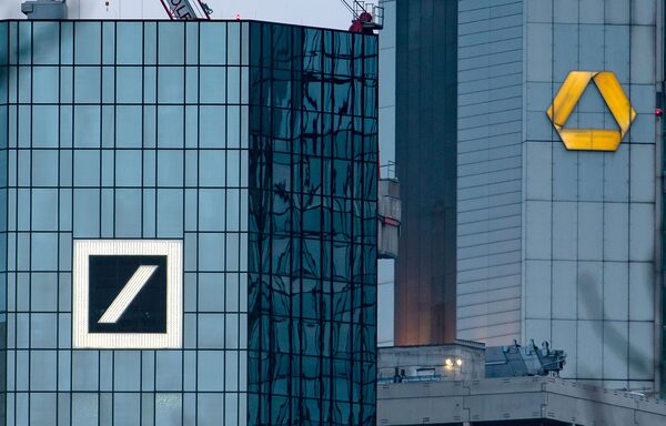The headquarters of German banks Deutsche Bank (left) and Commerzbank are seen in Frankfurt am Main, western Germany, on March 17, 2019.FRANK RUMPENHORST/AFP/Getty Images