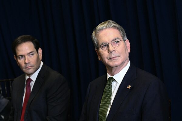 U.S. Secretary of State Marco Rubio, left, and Treasury Secretary Scott Bessent during Trump's meeting with Milei on Tuesday.BRENDAN SMIALOWSKI/AFP/Getty Images
