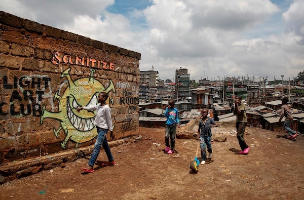 Children walk in the Mathare slum of Nairobi, Kenya, on April 22, 2020.The Associated Press