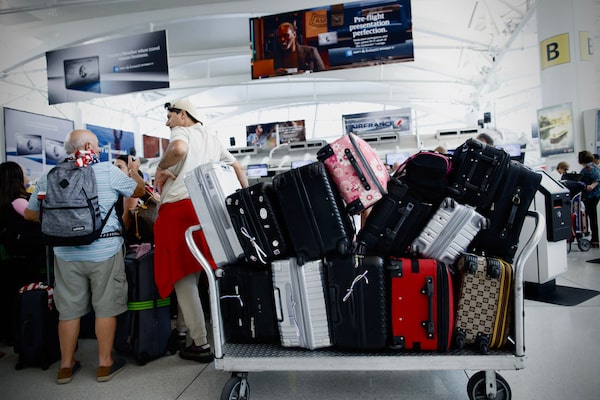 Passengers wait in line at Terminal 1 in John F. Kennedy International Airport, in New York, on July 20.KENA BETANCUR/Getty Images