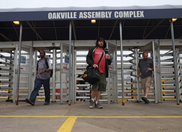 Ford workers at the Oakville Assembly plant leave work on Sept. 8, 2020, in Oakville, Ont.Glenn LOWSON/The Globe and Mail