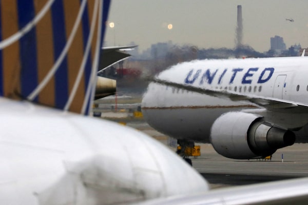 A United Airlines passenger jet taxis at Newark Liberty International Airport, on Dec. 6, 2019.CHRIS HELGREN/Reuters