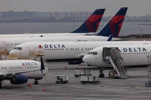 Delta Airlines passenger aircrafts on the tarmac of John F. Kennedy International Airport in New York on Dec. 24, 2021.YUKI IWAMURA/AFP/Getty Images