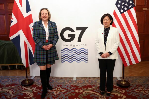 Top U.S. trade negotiator Katherine Tai emphasized Washington’s focus on addressing excess capacity in the steel and aluminum sectors from “nonmarket” economies during a meeting with U.K. trade minister Anne-Marie Trevelyan on Tuesday, her office said.