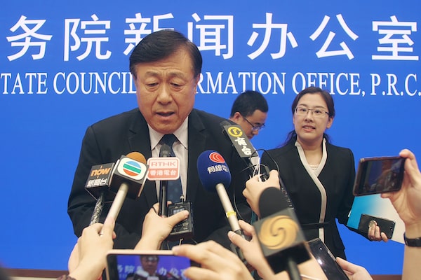 Yu Kangzhen, China's Vice President of Agriculture and Rural Affairs, answers questions at a press conference in Beijing on Thursday, July 4, 2019. Yu says the death toll from a disease that struck China's pig herds has risen to 1.2 million and the government is stepping up efforts to contain outbreaks.Sam McNeil/The Associated Press