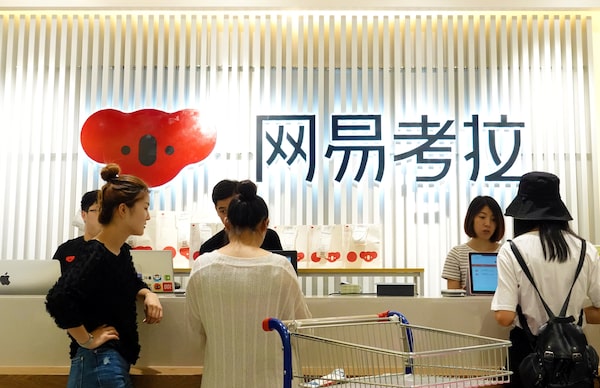 People are seen at the check-out counter of a physical store of Netease's e-commerce platform Kaola, in Zhengzhou, Henan province, China Aug. 11, 2018.CHINA STRINGER NETWORK/Reuters