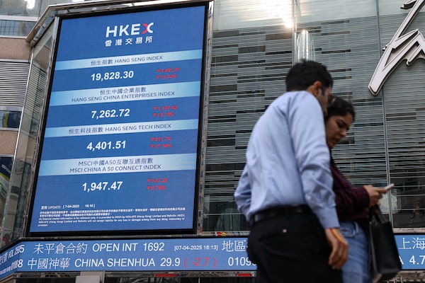 A screen displays the closing Hang Seng Index in Hong Kong on April 7.Tyrone Siu/Reuters